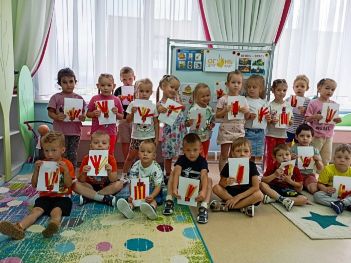 В средней группе "Море открытий" проведены беседы по темам: "Огонь друг - огонь враг", "Как вести себя при пожаре", "Спички детям не игрушки". |